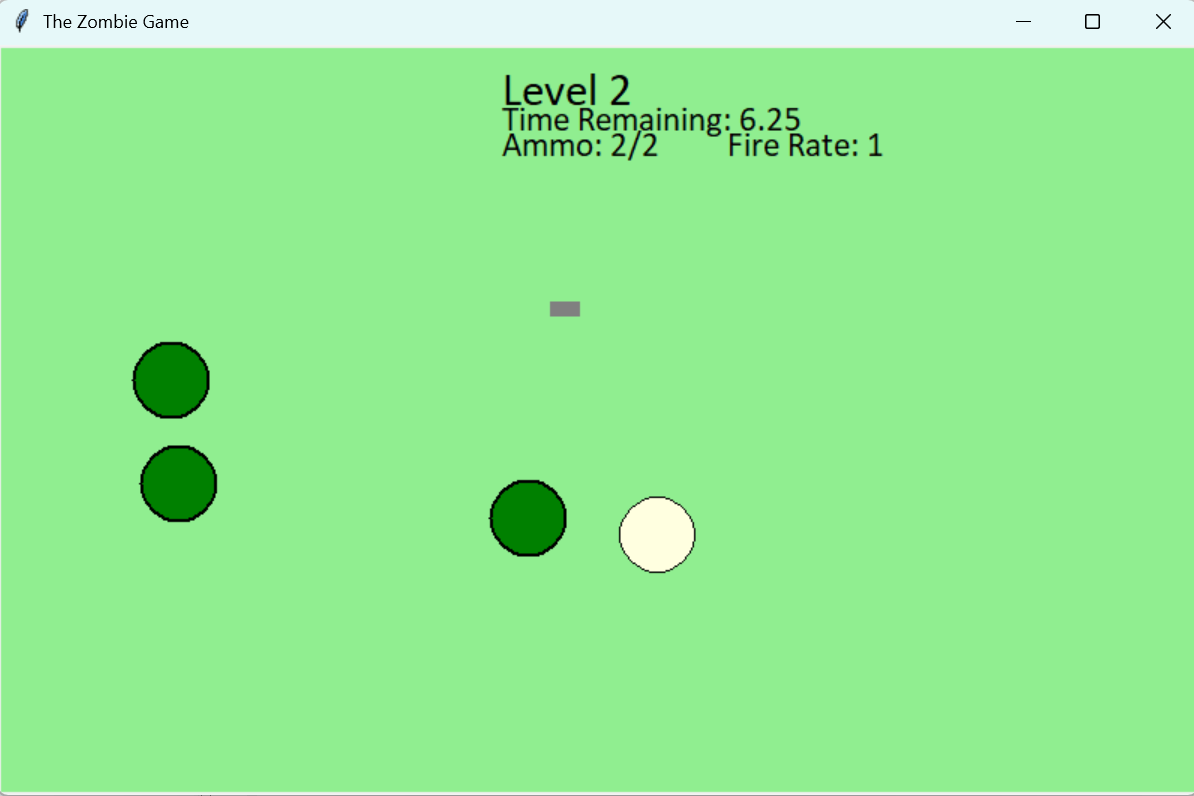 Survive as long as possible against waves of zombies. Shoot zombies, collect better guns, and try to reach higher levels. Each level spawns more zombies and they move faster.